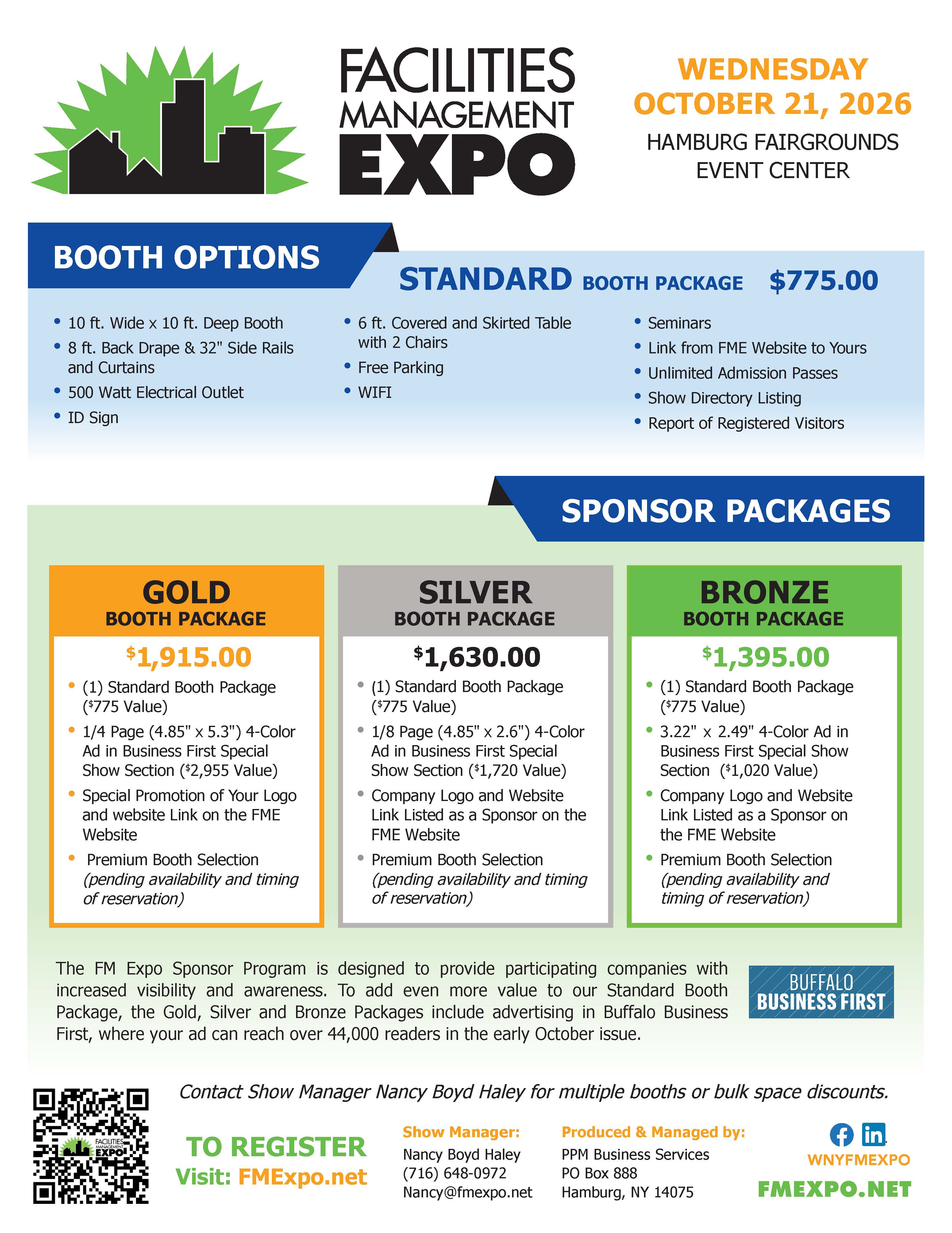 Standard 10'x10' booth cost $775.00; multiple booth discounts available. Ask about sponsorship packages.